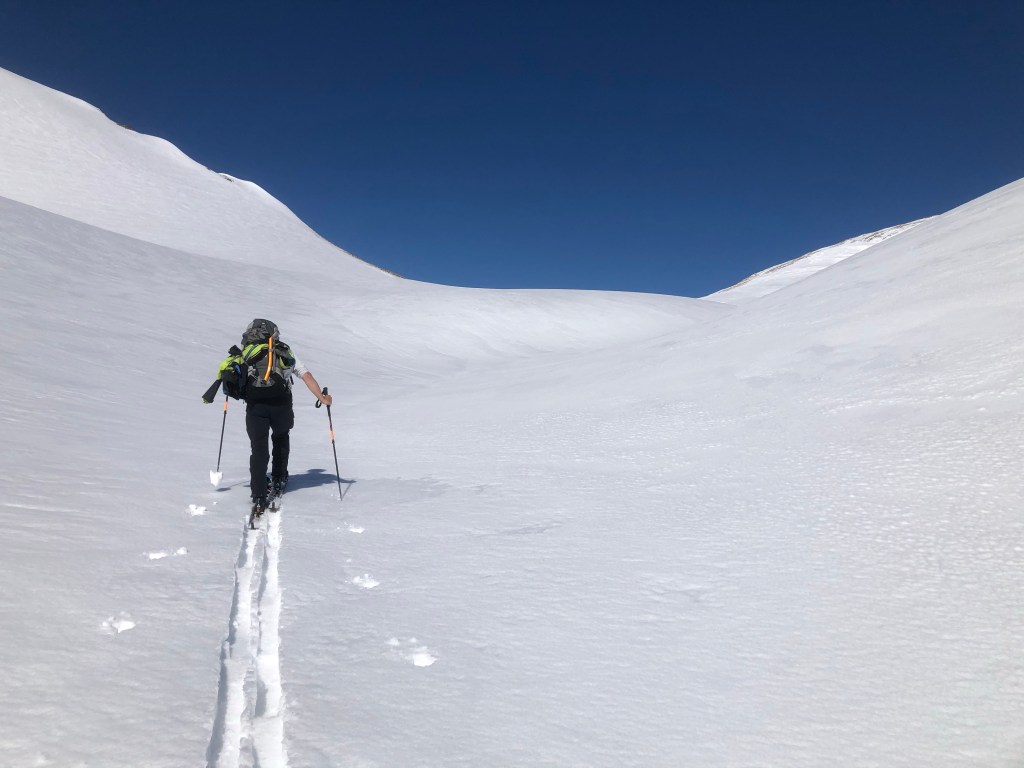 🇬🇧The south face departure means ski carrying …..one more time an opportunity to debate the merits of Alps crossing from South to North versus North to South …. our response ….it depends !